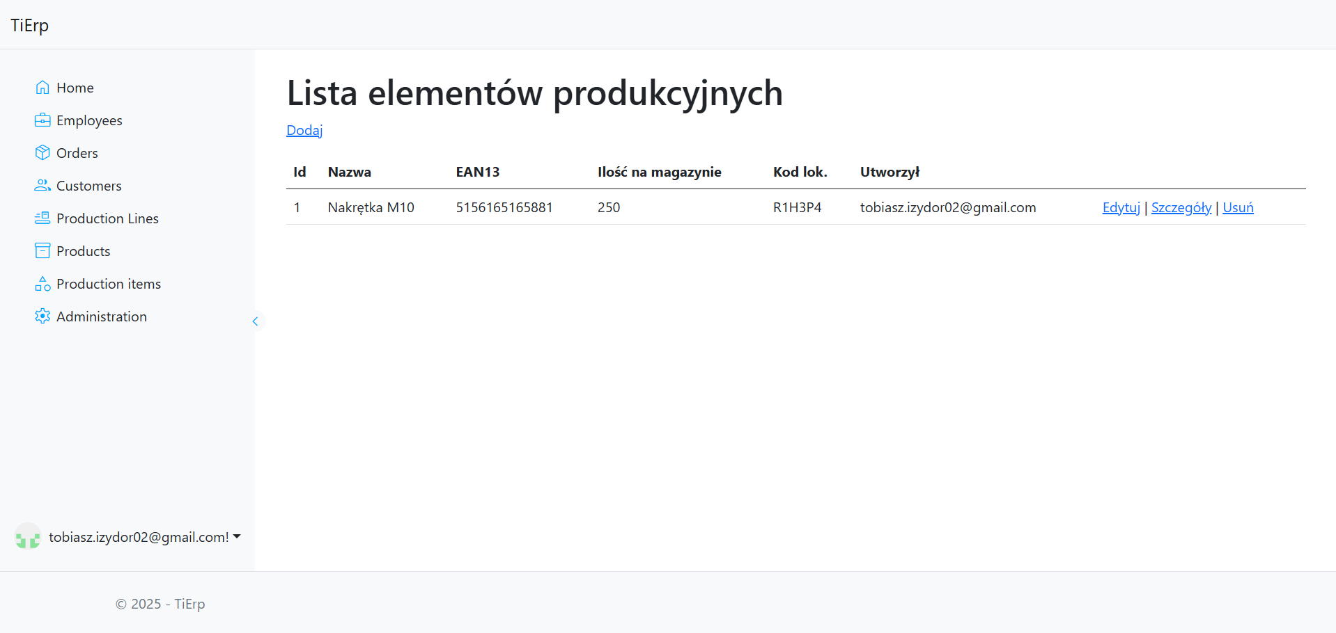 Jest to mini system ERP oparty na ASP.NET 8 MVC. Został on stworzony na potrzeby zaliczenia przedmiotu na studiach.